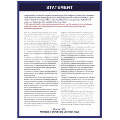 Statement of Shincheonji Church of Jesus